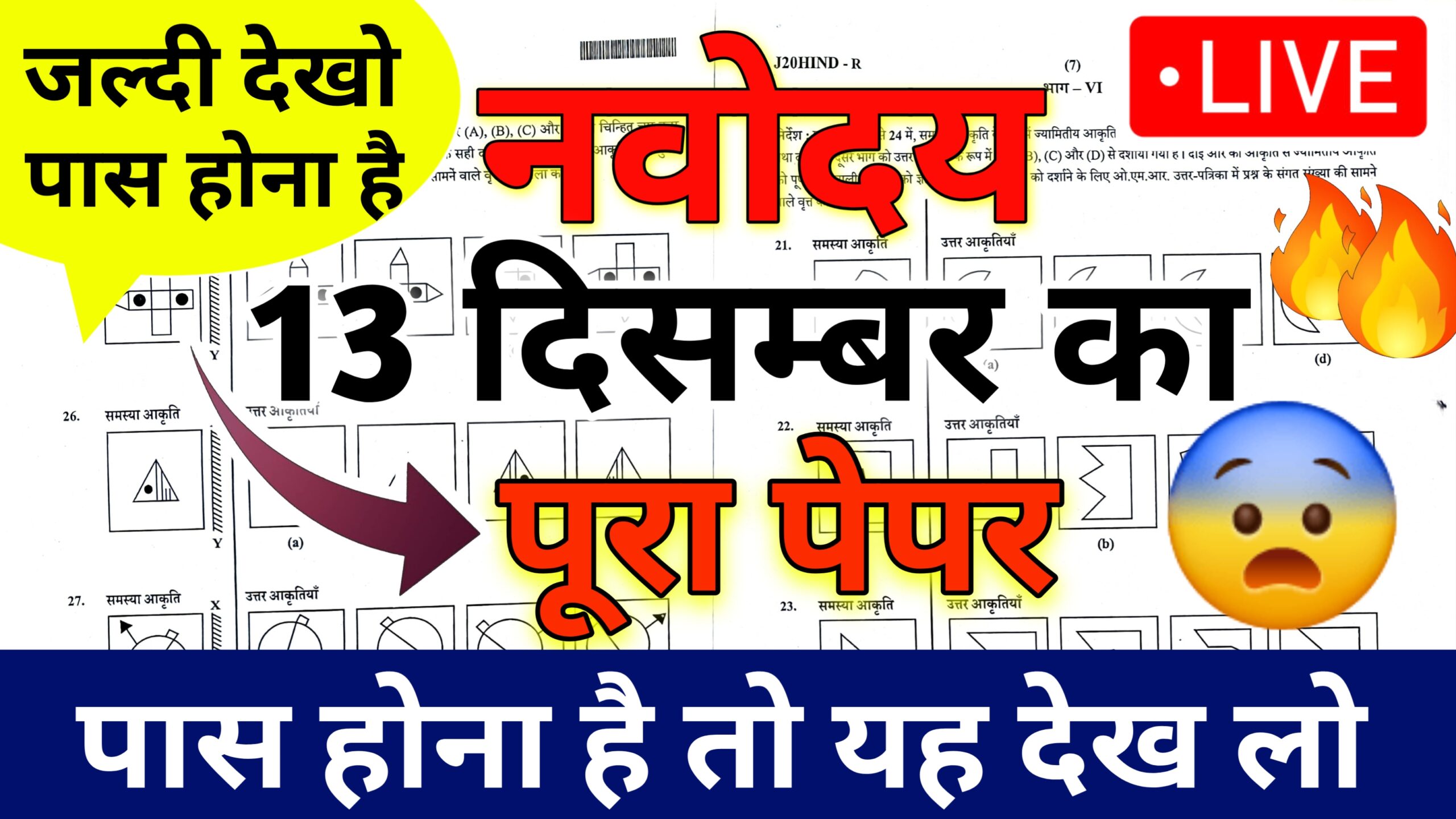 Navodaya Vidyalaya Class 6th 13 December 2025 ka complete paper | Jawahar Navodaya Vidyalaya Class 6 Exam 2026 New Model Paper