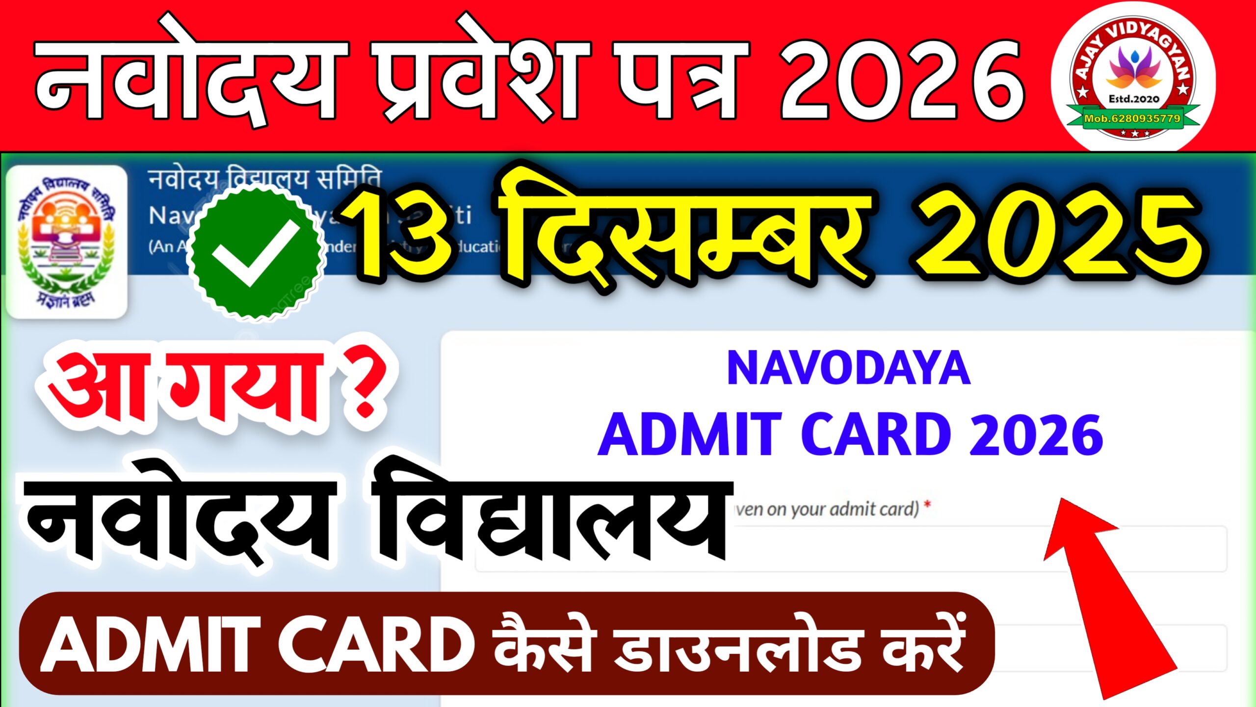 The Navodaya Admit Card 2026 Class 6 is available on the official website https://navodaya.gov.in. To download the admit card, students need to enter their Registration Number and Date of Birth. Parents are advised to ensure that the admit card is downloaded well before the examination date.